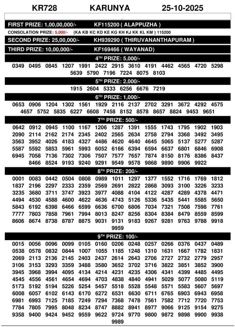 Karunya KR-728 Result Today | Kerala Lottery Chart