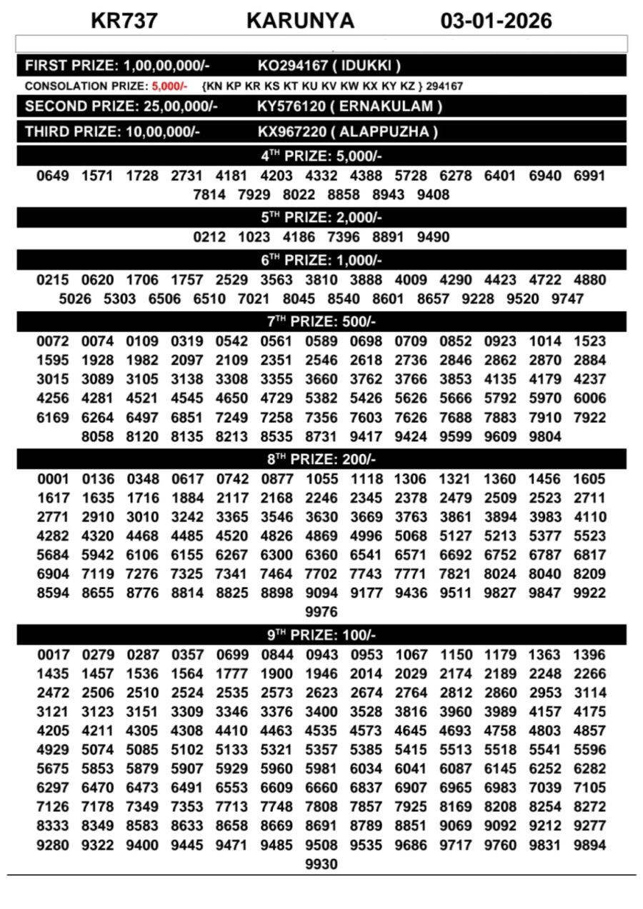 5th Prize Chart – ₹2,000 (Last 4 Digits)