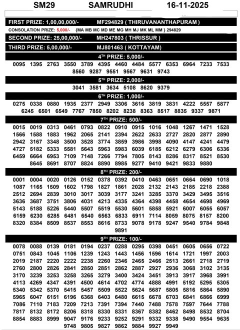 Kerala Lottery Result BT-29 Today | Bhagyathara Lottery Chart